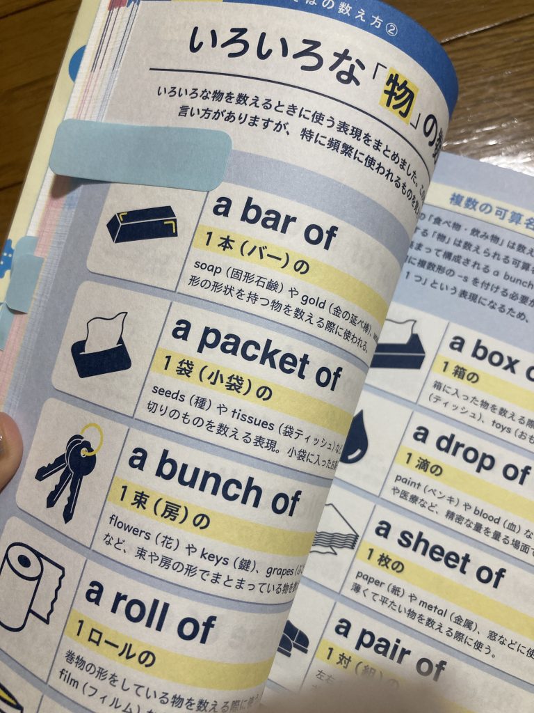 ・前置詞の表す「位置関係」がピクトでわかりやすく提示されている ・日常生活でよく使われる「ものの数え方」について、わかりやすく提示されている