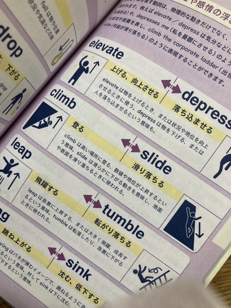 いかがでしょう、climbの対義語としてslideのみを提示することによって、学習効果が上がるのか?と言われると自分は疑問に感じますが・・・