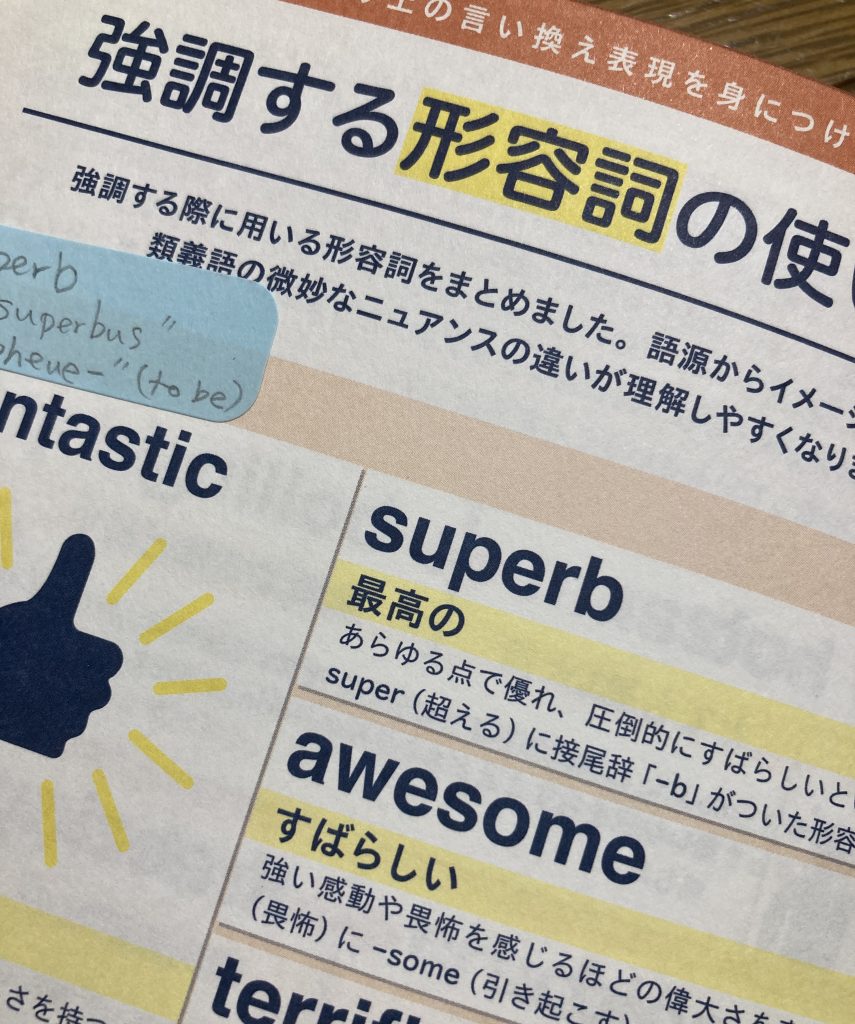 いつも通り、気になるところにたくさん付箋をつけています。今回も英語参考書オタク(!)の活躍の場をお見せします(笑)