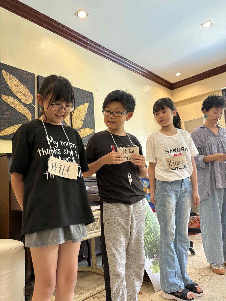 どの会もメイン教材はORTで、ここは普段の英語学習ともリンクするところが子どもたちの安心材料の一つだと思っています。いつもは一人で読むORTをキャンプでは友達と読み、劇にして、ORTの世界を楽しんでくれたのであれば嬉しく思います。これからもORTを読むときに、「これはキャンプでみんなで読んだ本だ!」とか「これは劇でやった本だ!」とさらにORTを身近に感じてくれることと期待しています。