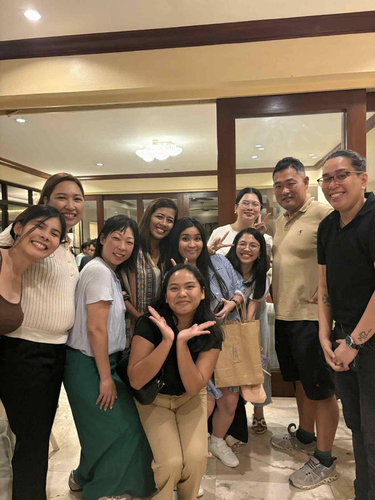 またこの会のもう一つの目的は、先生たちにもリアルで生徒に会える喜び、リアルで教えることの楽しさを感じてもらうことでもあります。中には、セブではなくミンダナオ島から参加した講師が「飛行機に乗るのも初めて!」というパターンもありましたし、日本食やマッサージなど「人生で初めて!」の経験もたくさんしてもらいました。(彼女たちの、初めてのことに対するキラキラした目がとても印象的でした。私と年齢が一回り以上違う講師もいるので、妹?いや娘?!のように可愛かったです。笑)私自身にとっても、普段は講師とゆっくり話せる時間はなかなか持てないので、この先生はこんなに日本語話せるの?!(Colah)とか、フットワーク軽すぎだろ!(Jelly&Aylaは隙間時間を使ってTOPSとか水族館とか行ってました)など、新しい発見がたくさんありました。