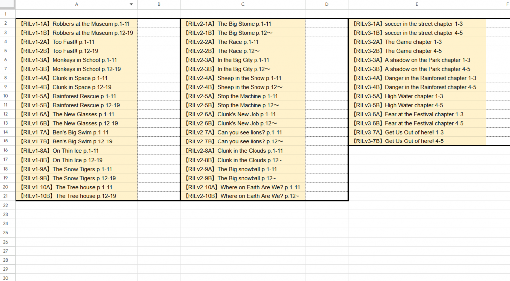 Read and Discoverのレベル変更後のシートもありますので、ご活用ください。