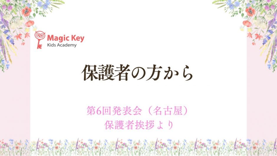 2025年6月に名古屋で開催した第6回発表会で、MK生徒様の保護者Nさんが素敵なご挨拶をしてくださいました!