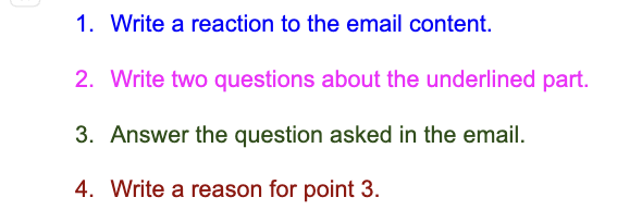 3級のemail問題は、届いたemailの質問に答えるだけでOKでしたが、準2級からは相手から繰り出される情報に共感(リアクション)し、さらにその話題について質問を2つ作り、正しい英語でかつ推奨される情報順にアウトプットすることが求められます。