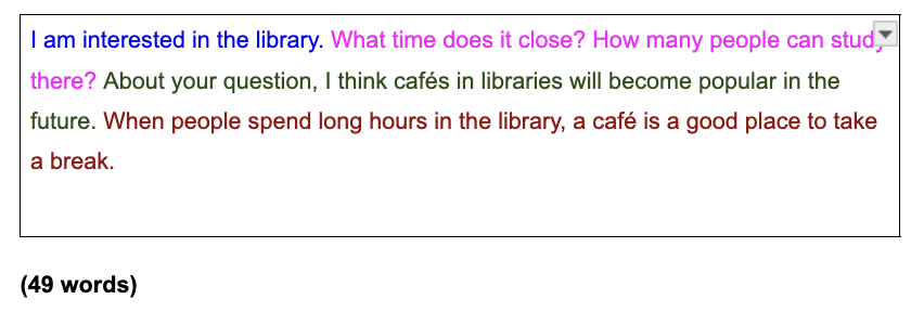 また、指定word数については、必ず指定内(40-50words)に収めてください。逸脱した場合、減点あるいは採点不可(全評価項目0点)となることもあるようです。(こちらについての詳細な採点の基準や判断についても、公表されてはおりません。)