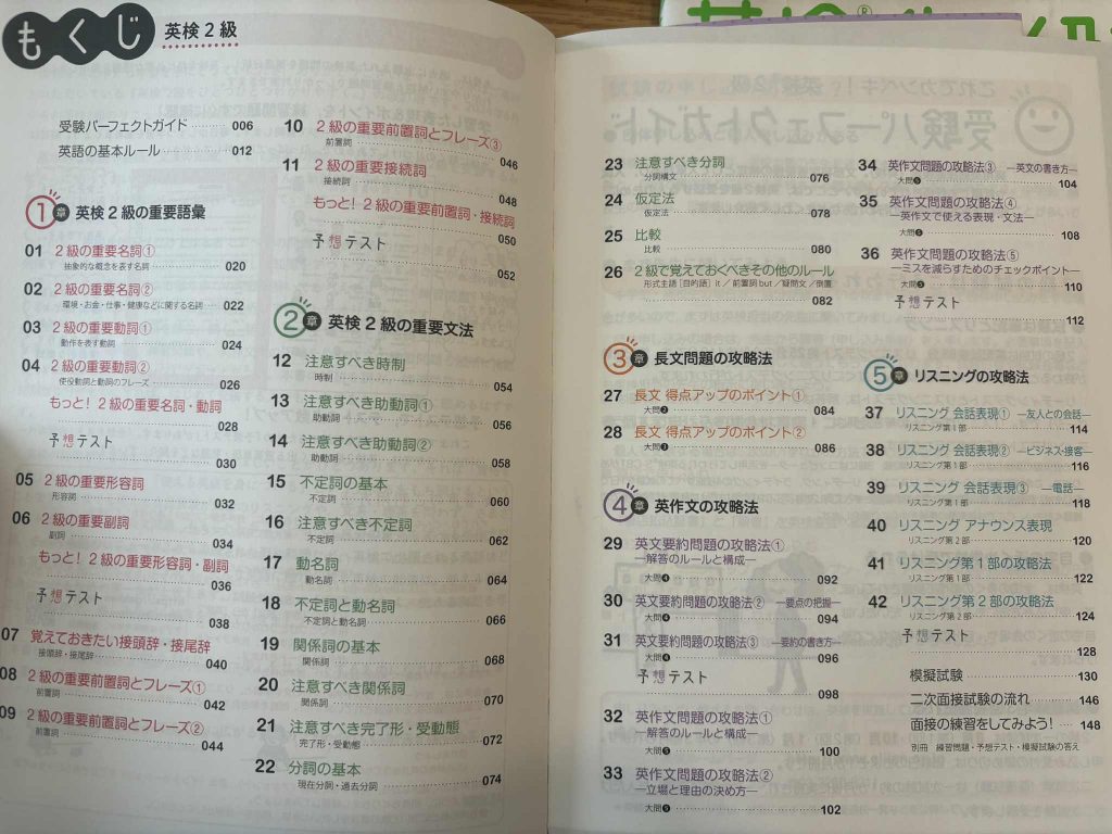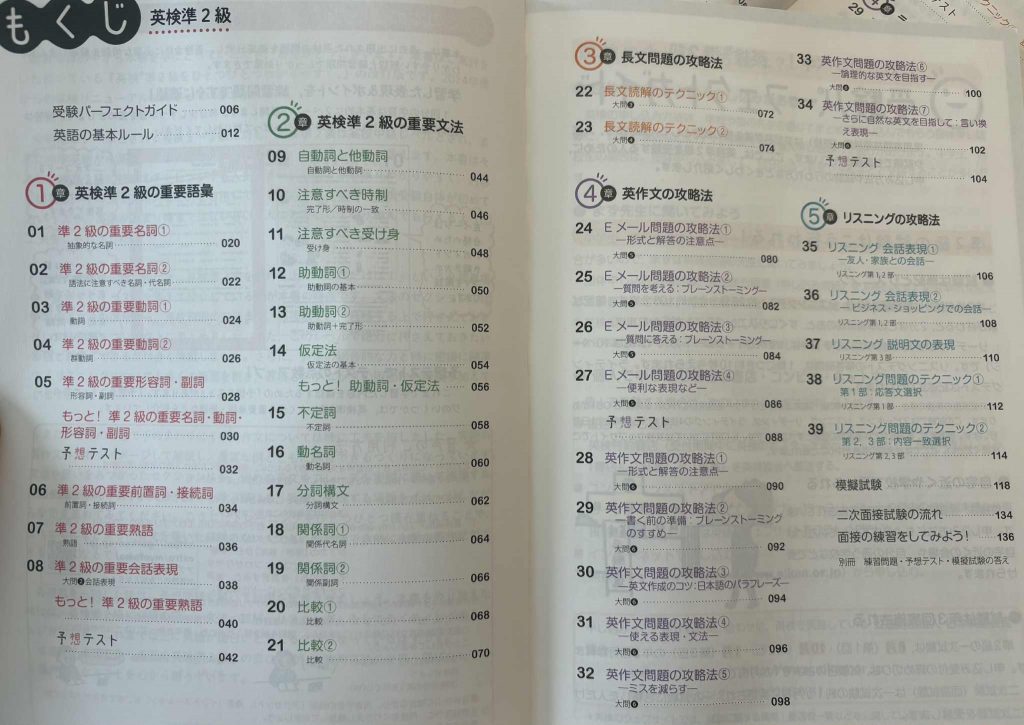 なお、各級のもくじは下記の通りですので参考にしてください。
