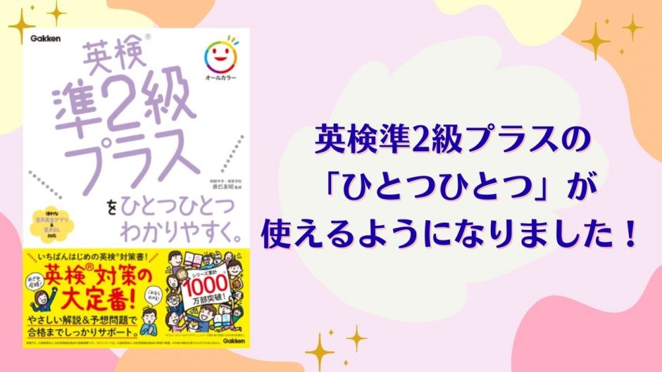 なかなか準2プラスの教材も発売されず、準2での対策で十分だと考えてきましたが、Gakkenさんから2025年8月に準2プラスの「ひとつひとつわかりやすく」が発売されましたので、こちらも対応できるように準備を進めて参りました。そして、この度準備が整いましたので、ご希望の方は準2プラスのへの教材変更が可能となります。